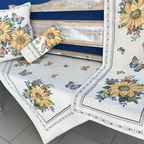 Skladem jsou různé velikosti těchto tkaných ubrusů i s dekorativními polštářky.